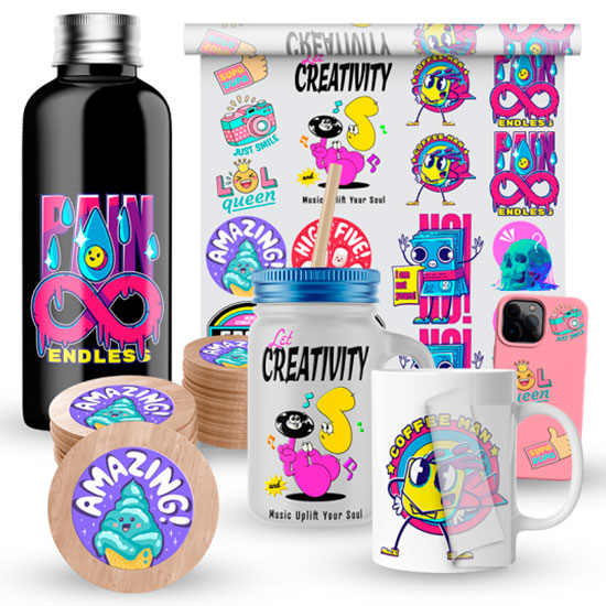 • Personalización de productos (tazas, frascos, termos, libretas, etc.)